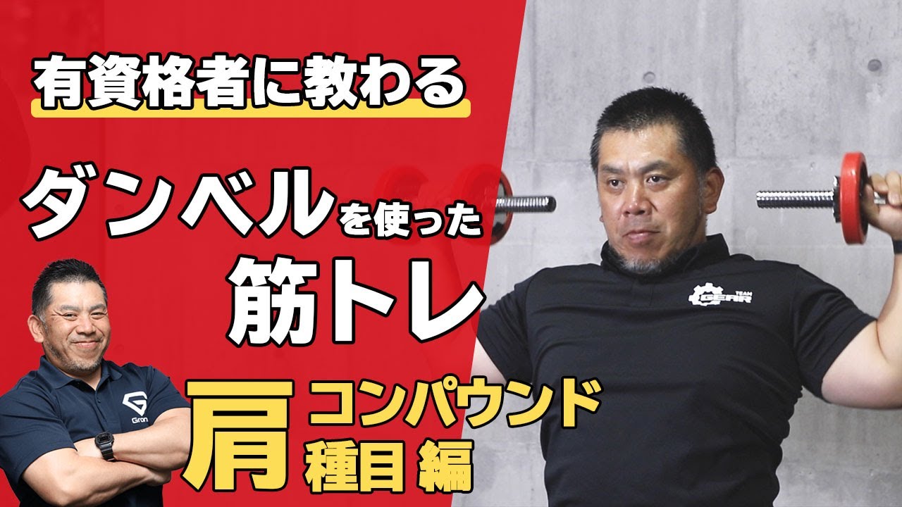 ダンベルを使った肩の筋トレ、ダンベルショルダープレス・アーノルドプレス ・ダンベルアップライトローのコンパウンド3種目をご紹介します