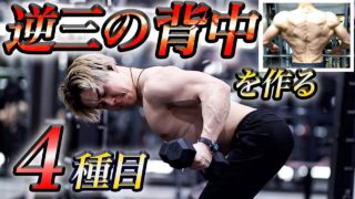 背中のトレーニングは逆三角形の背中を作るために、広背筋を鍛えることを重点に置いたメニューで計5種目行っ...