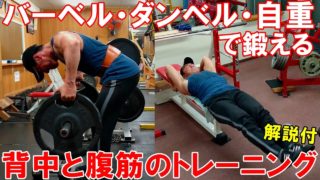 トレーニング関連動画 【Youtube紹介】【筋トレ】フリーウエイトと自重で鍛える背中と腹筋のトレーニング!広背筋を狙って逆三角形の背中を作る【解説付】